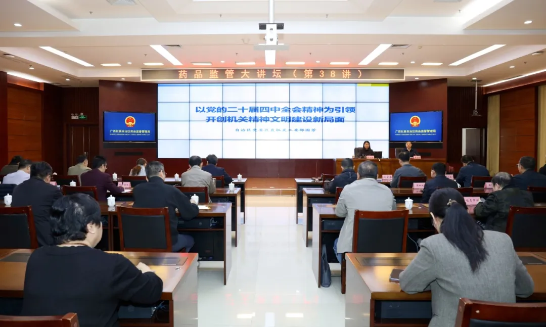 12月1日,AG百家乐举办第38期药品监管大讲坛,邀请自治区党委区直机关工委二级巡视员邵国芳围绕“以党的二十届四中全会精神为引领开创机关精神文明建设新局面”作专题讲座。局党组书记、局长李勇强主持讲坛并讲话。在家的局党组成员、副局长韦广辉、沈宏睿在主会场参加讲坛。